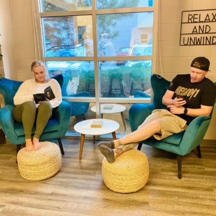 Other family centers can feel cold and uncomfortable. Our caregiver lounge features a tea bar with tea from local businesses as well as coffee, snacks, and local baked goods. We take pride in our cozy seating area where you will be able to indulge in some down-time, enjoy a savory cup of tea or coffee and use our free Wi-Fi.
