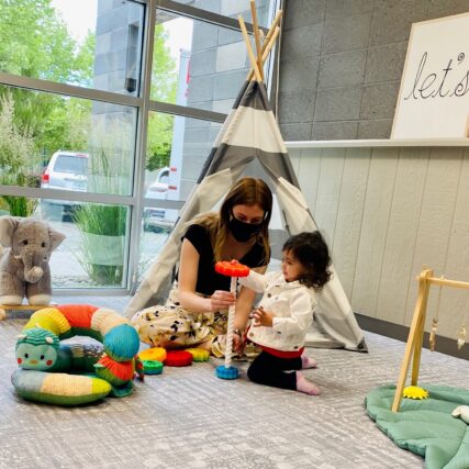 We offer a developmentally rich environment for your children to build their skills in all areas of child development in an age-appropriate, supervised, unstructured play area. While they play and grow, you can either engage in your child’s play, or you can simply take a breather and relax in our caregiver lounge.